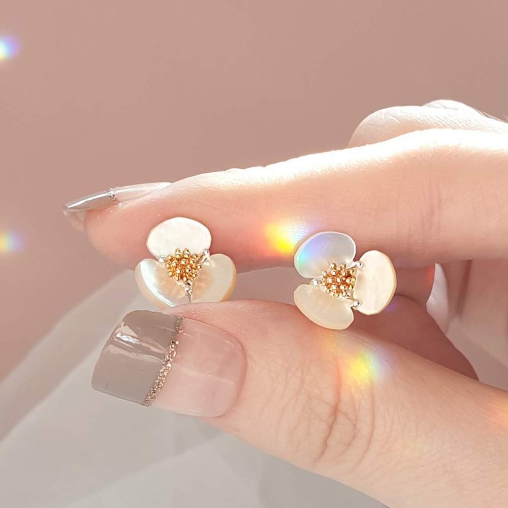 天然貝殼花朵耳環